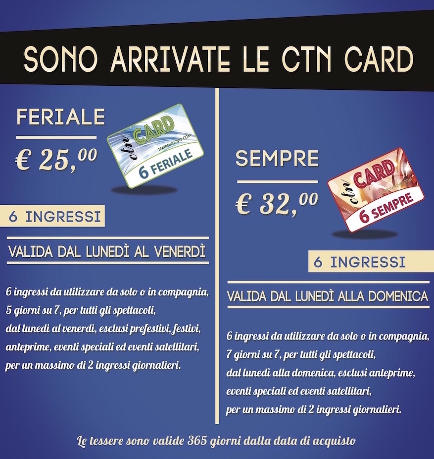 In vendita in cassa nei normali orari di apertura della sala oppure online cliccando sul seguente link:
