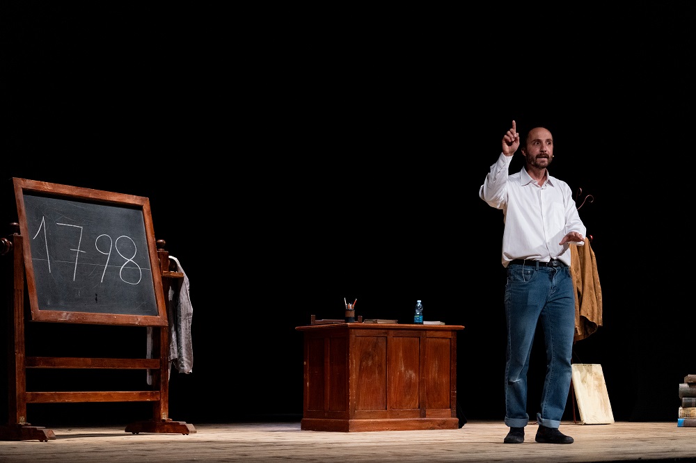 Così Andrea, anzi il professor Roversi, dovrà misurarsi con una classe che sarà rappresentata dagli spettatori in teatro: nasce una magica lezione nella quale si mescoleranno poesie, riflessioni personali, interazioni con la platea, momenti di grande ironia e divertimento. Il pubblico si troverà così a ripensare ai giorni di scuola, ai banchi, agli sguardi assonnati degli studenti e a quelli indagatori dei professori, ai muri verdolini che hanno ascoltato teoremi, sintassi, formule, versioni in latino, interrogazioni di storia e anche tante poesie lette e recitate a memoria come fossero la lista della spesa. E in queste aule, già di per sé strette, alcuni autori per la loro grandezza ci stanno a malapena. Uno di questi è Leopardi, che giganteggia senza essere un eroe.